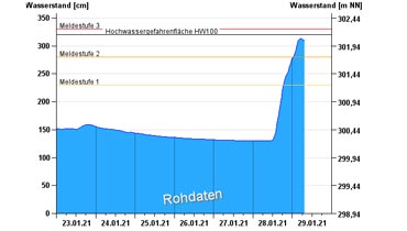 Trotz der nur mäßigen Schneehöhe bei uns, hat das einsetzende Tauwetter zusammen mit dem Regen für eine steigende Gefahr von Überschwemmung gesorgt.